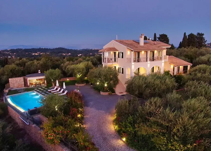 Villa Caesar dysponuje tarasem z widokiem na górę, 10 min jazdy od lotniska Korfu. Willa oferuje sprzęt do barbeque i ogród, a Muzeum Kapodistrias jest w 2 km.